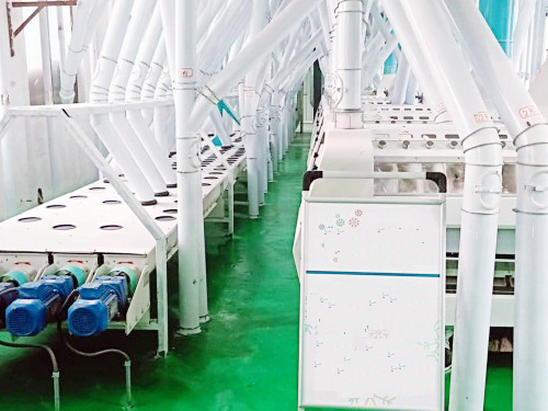 在倉(cāng)儲(chǔ)、干法清理,制粉及面粉配粉的各道工序完全自動(dòng)化,日加工小麥200噸的面粉加工生產(chǎn)線。